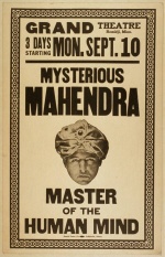 M.S. "Doc" Mahendra (c.1886-1970), born Francis B. Sterling in California, specialized in mentalism, some times billing himself as "The Mystic". He spent his early performing years in Chicago, when not on the road, and joined the Chicago Conjurers' Club.